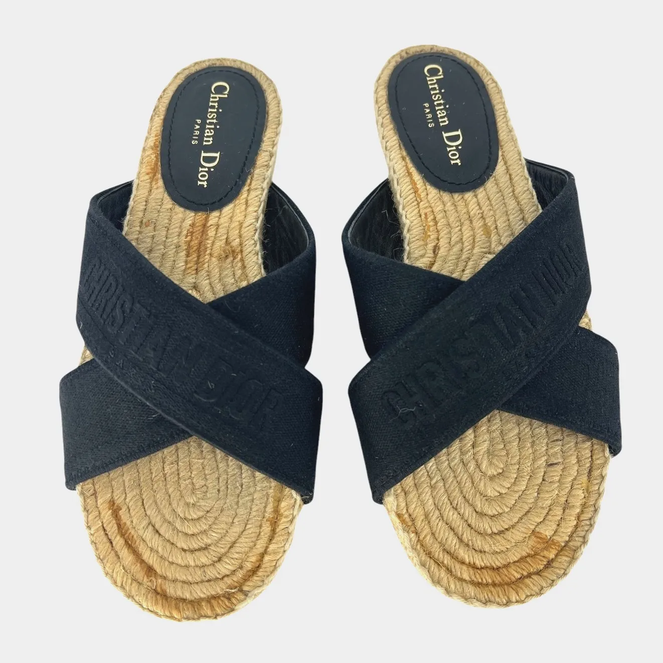 Christian Dior Canvas Embroidered Granville Espadrille Crisscross Flat Slide Sandals In good pre-ow... Show more