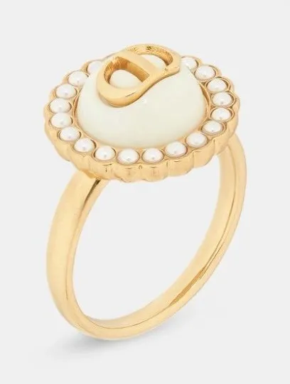 Dior PETIT CD BAROQUE RING Gold-Finish Metal with White Resin Pearls and Latte Glass size L new wit... Show more