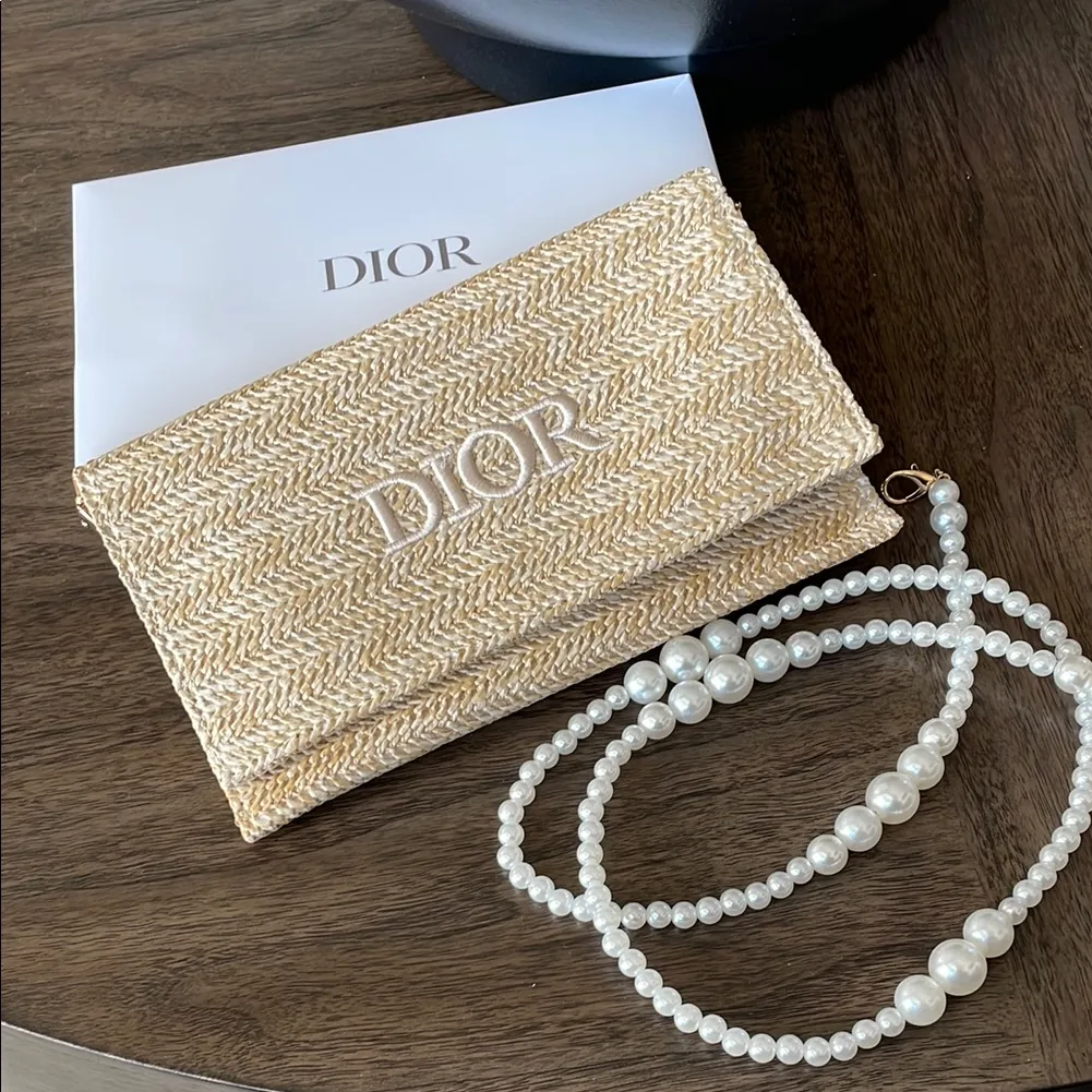 Beautiful Dior pouch! Christian Dior Novelty Clutch Pouch from summer 2023. Rattan Beige. Straw clut... Show more