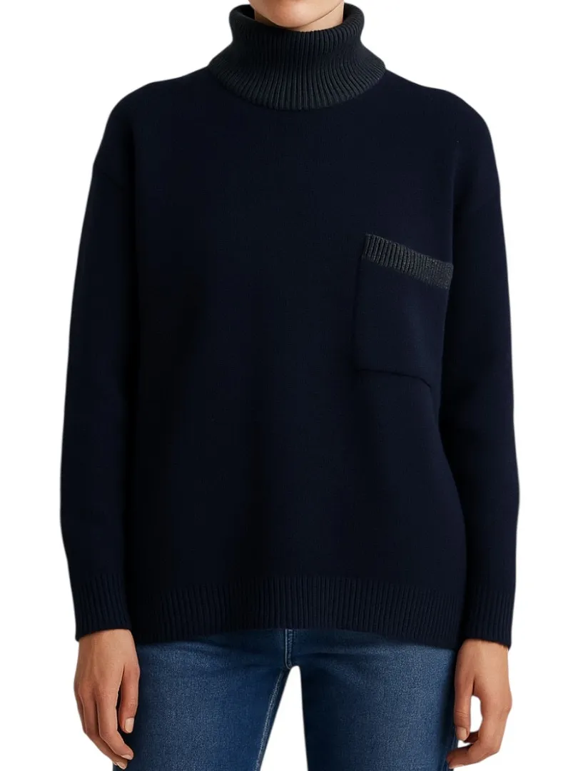 Christian Dior Turtle Neck Sweater Chest Pocket Ribbed Trim 100% Wool Navy small flaw as phot... Show more