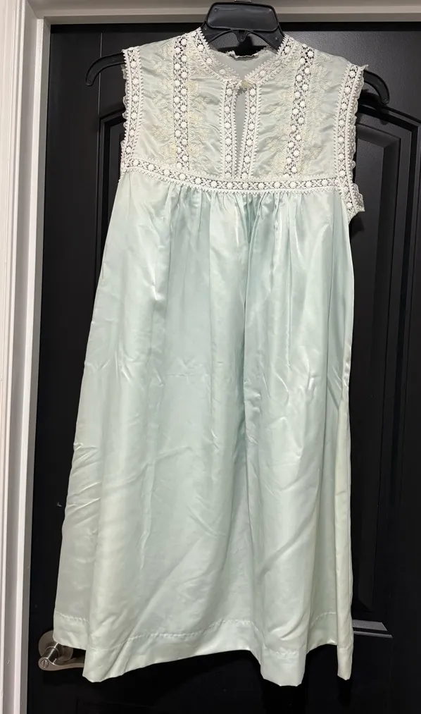 Christian Dior Vintage Blue Mint Green Satin Lace Dress. Beautiful and elegant. Great for a bride to... Show more