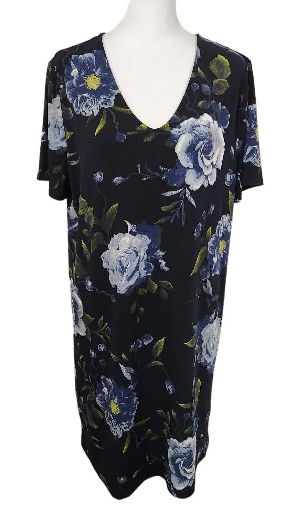 Christian Siriano shift dress with short sleeves. Features pull-on style and a v-neck. Falls about a... Show more