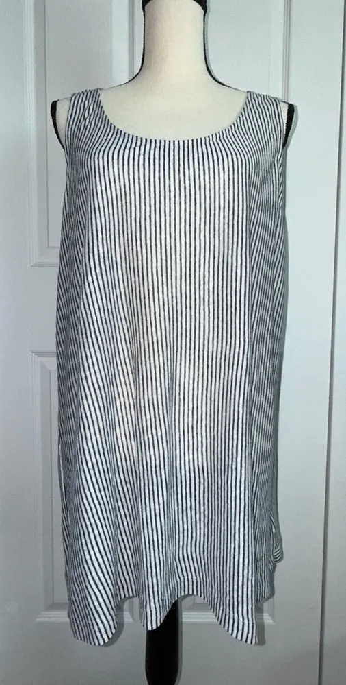 Christian Siriano Blue and White Striped 100% Linen sleeveless Tunic Top Plus 1x - $25 - From Kim