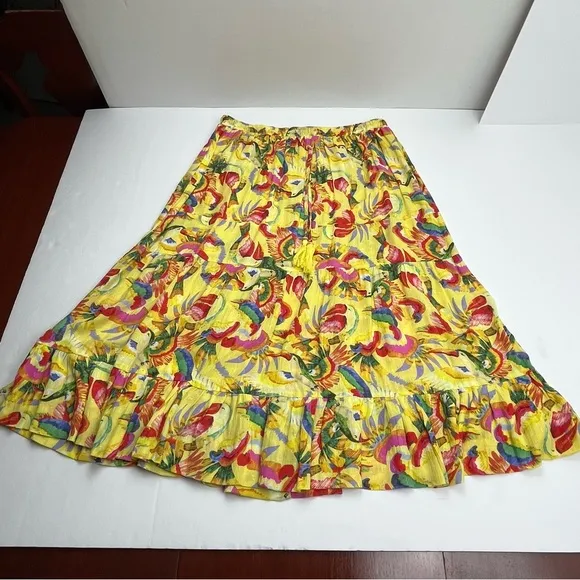 Christian Siriano Tiered Boho Tropical Midi Skirt Size Medium Yellow Toucan Preowned in good condit... Show more