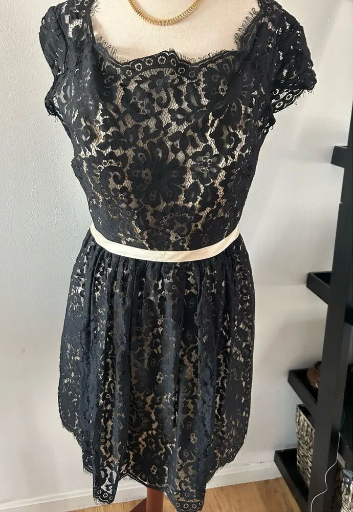 Christina Wu black lace cocktail dress short size 12 wedding guest fancy dinner - $75 - From Renata