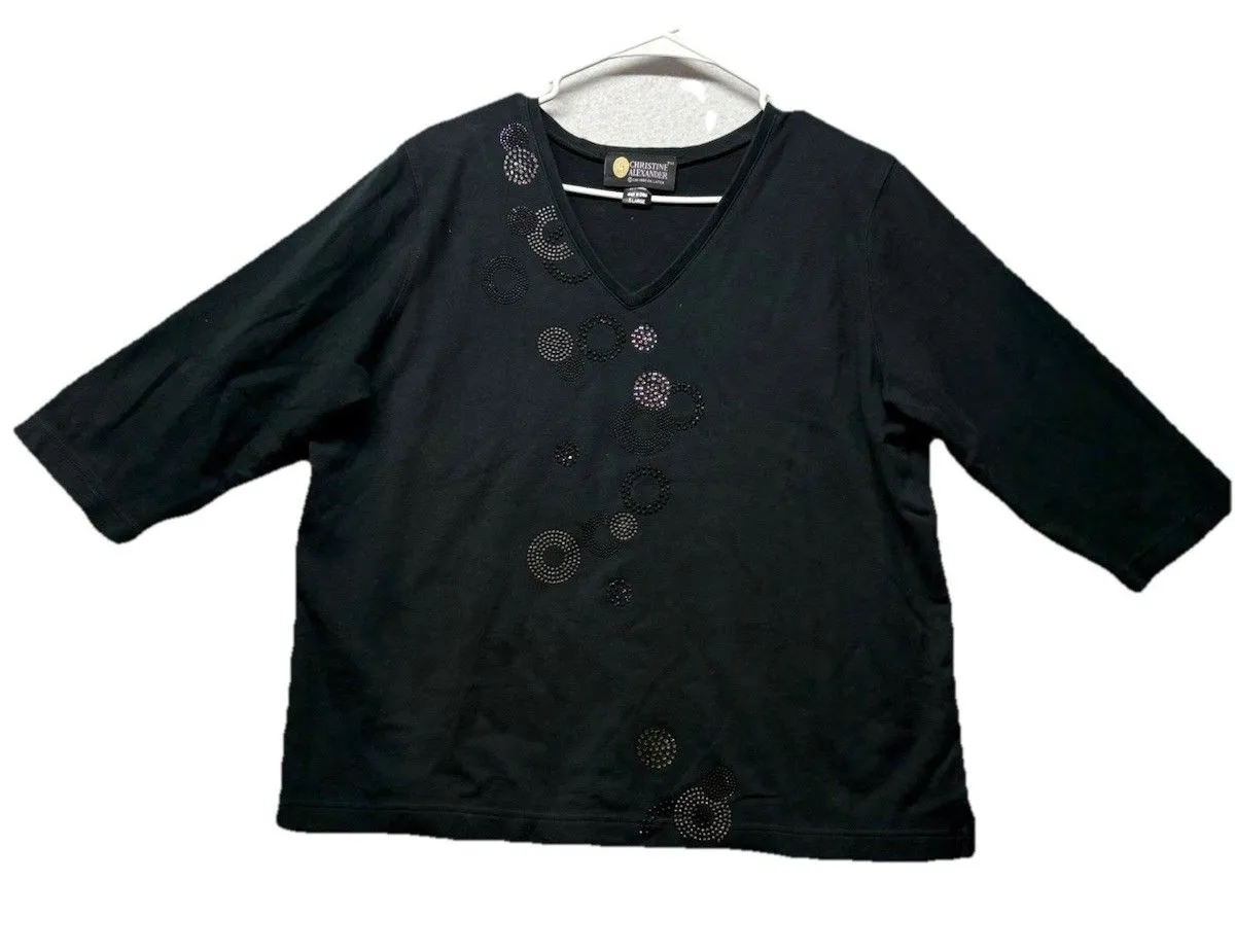 The Christine Alexander V-neck Black 3/4 Sleeve Studded Shirt in Size XL is a stylish and versatile... Show more
