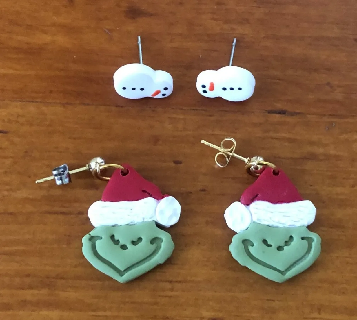 Christmas Earrings Lot Grinch Santa Face & Snowman Studs Holiday Jewelry Set - $18 - From Sheryl
