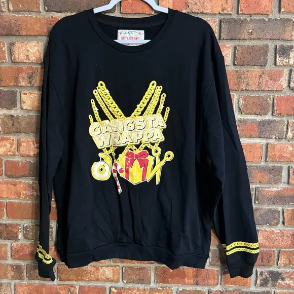 Christmas holiday womens gangsta wrappa crewneck sweatshirt black XL - $20 - From Christine