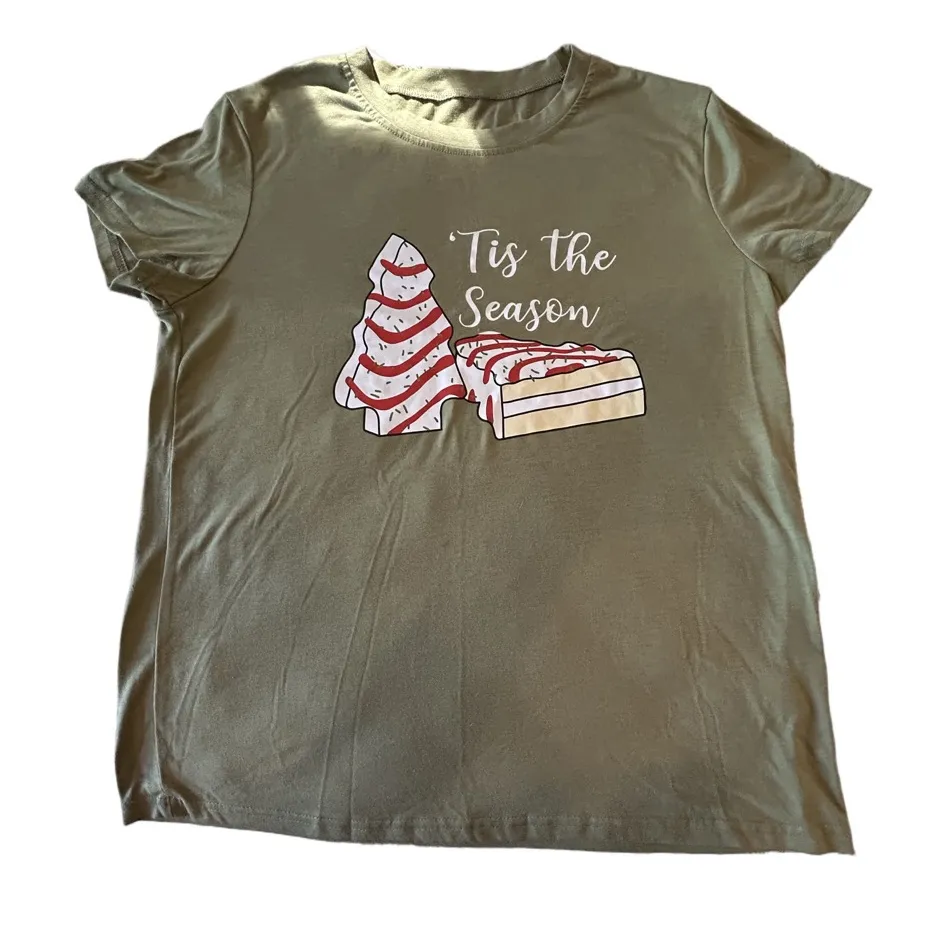 Christmas Tis the Season' T-Shirt Christmas tree cake shirt women M 🧑‍🎄 🌲 🎂 Green Size M - $5 - From lisa