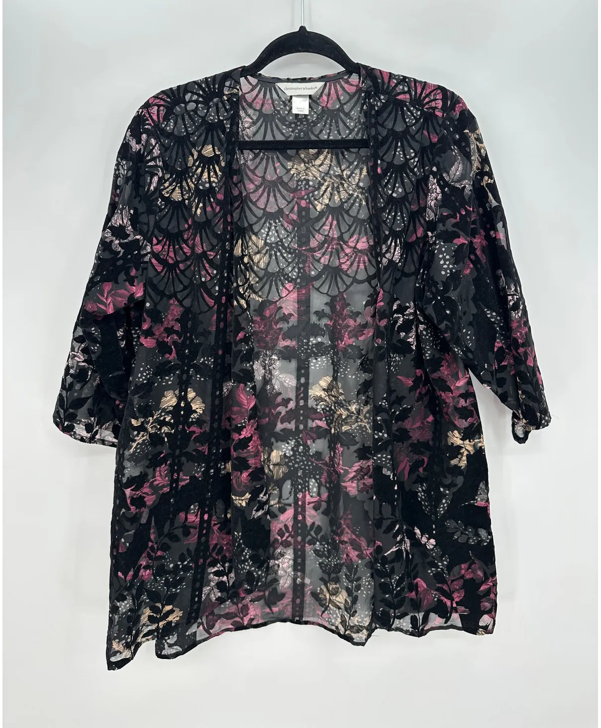 Christopher & Bank Women Black Floral Velvet Burnout Cardigan Size L Half Sleeve Size L - $25 - From Taylor