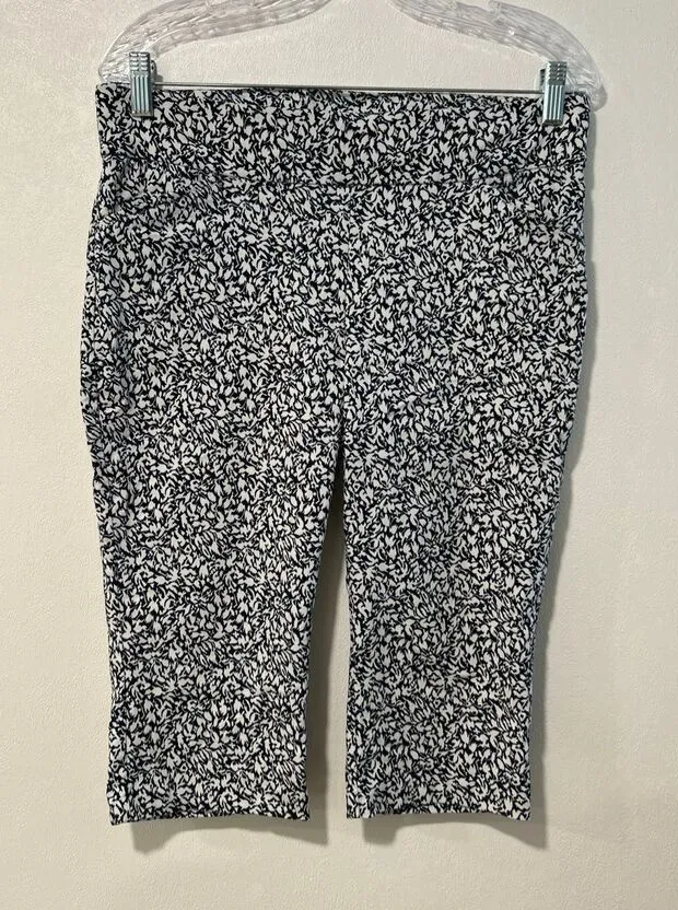 Stay stylish and comfortable with these Christopher & Banks Signature Slimming Petite Capris in a classic black and white floral print. Designed with a flattering slimming waistband and comfortable stretch, these capris are perfect for casual outings, work, or travel. • Brand: Christopher & Banks • Collection: Signature Slimming • Size: 10 Petite (10P) • Color: Black & White • Pattern: Floral • Length: Capri/Cropped • Material: Soft stretch blend (tag not shown) • Fit: Pull-on style, comfortable waistband • Condition: Excellent pre-owned (no stains or flaws)