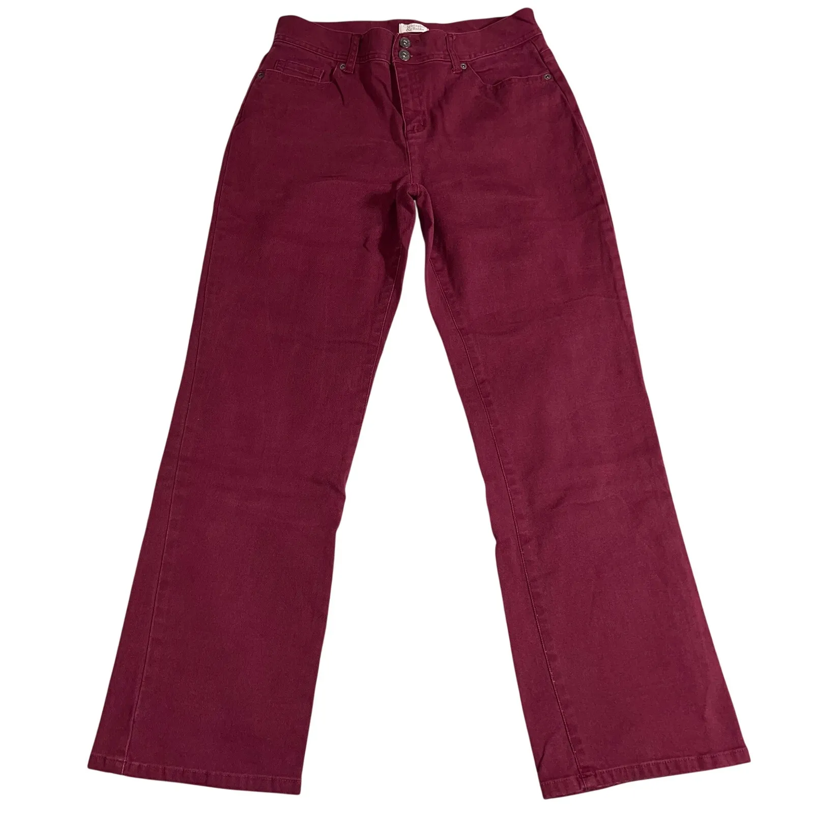 Denim Blue Jeans Bootcut Wine Red Dark Wash Christopher & Banks Condition: EUC Size: 10 Description: Denim blue jeans Boot cut Double button and zip closure 5 Pocket design Solid dark red Stretchy Lightweight and breathable Classic business casual Made in China Cotton Spandex Machine washable Approx measurements: 15.5" waist 11" rise 31" inseam If purchased by noon central time I try to ship same day Weight: 1P6O SKU: Wine Red Dark Wash Bootcut Denim Blue Jeans Christopher & Banks