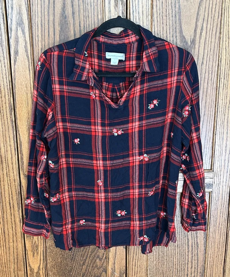 Christopher & Banks Plaid Embroidered Floral Flannel Collared Top Shirt Women’s Large Excellent used condition It’s very soft!!! P2P 21” Length 24.5” Questions? Leave a comment below!