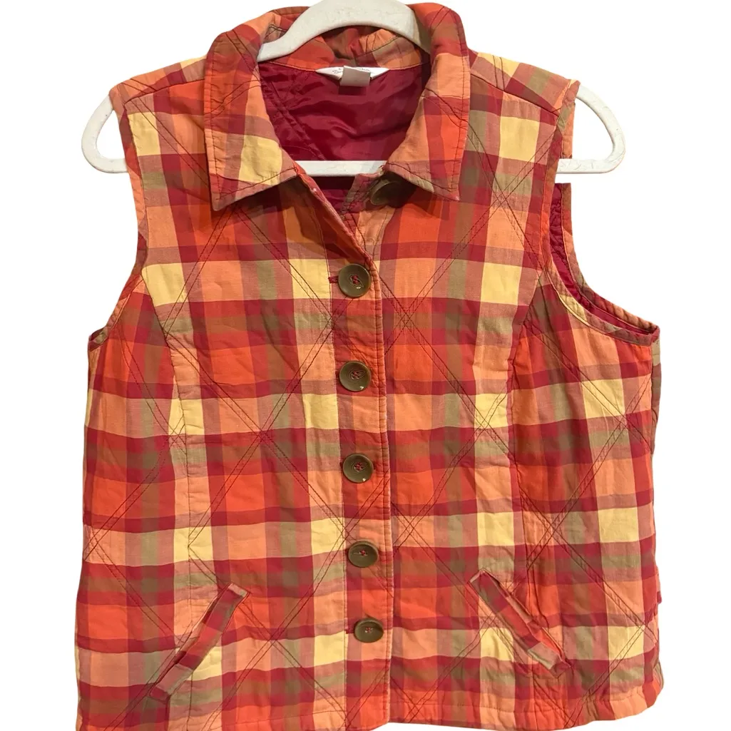 Cozy, autumn-ready, and full of charm—this Christopher & Banks quilted vest is perfect for layering over sweaters, flannels, or casual fall outfits. With chunky buttons and warm fall tones, it’s a must-have for cozy weekend wear, outdoor walks, or seasonal styling. Details: • Brand: Christopher & Banks • Size: XL • Color: Fall/autumn palette (greens, golds, burnt tones) • Style: Quilted vest with chunky buttons • Condition: Excellent pre-owned • Ideal for layering, rustic style, casual outdoor outfits, or cozy fall fashion Perfect for: • Autumn walks, pumpkin patches, apple picking • Layering over sweaters or flannels • Cozy weekend or casual outfits