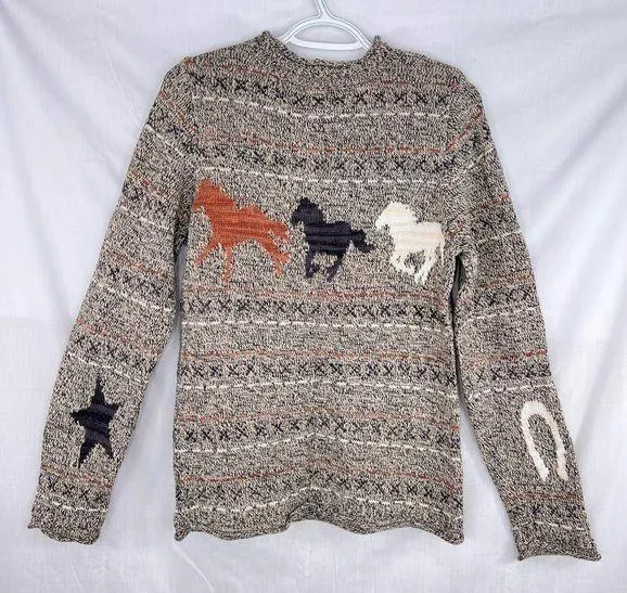 Christopher & Banks Vtg Esquestrian Horse Southwestern Sweater Sz M Cotton Blend Brown Size M - $26 - From annie