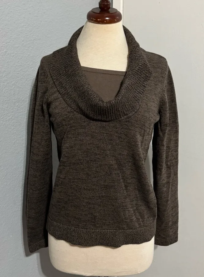 Elegant dark brown cowl neck sweater. Soft and comfortable. Ideal for layering. Preowned - Good con... Show more