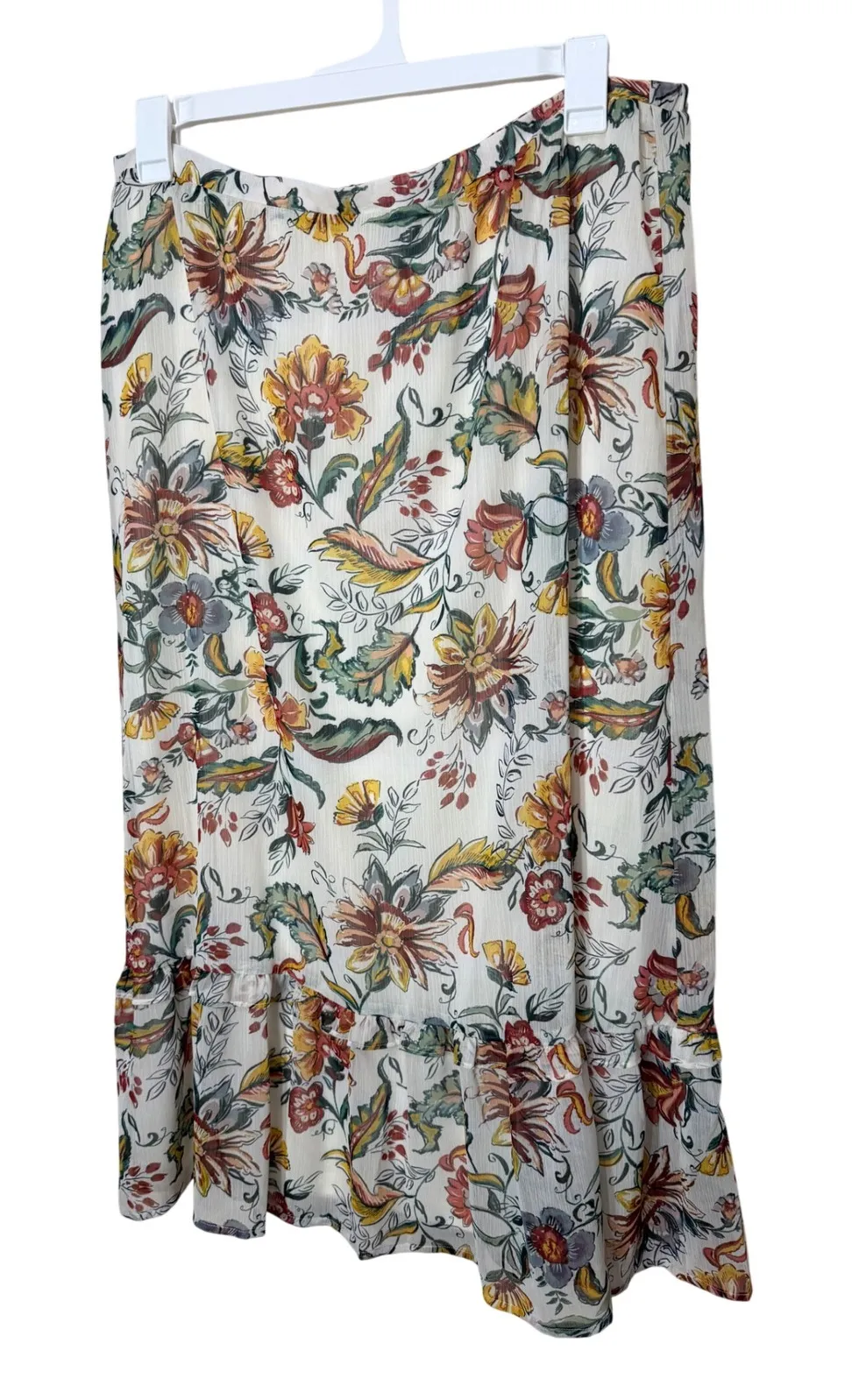 Christopher & Banks women's maxi skirt in cream with a vibrant floral print. This skirt features a t... Show more