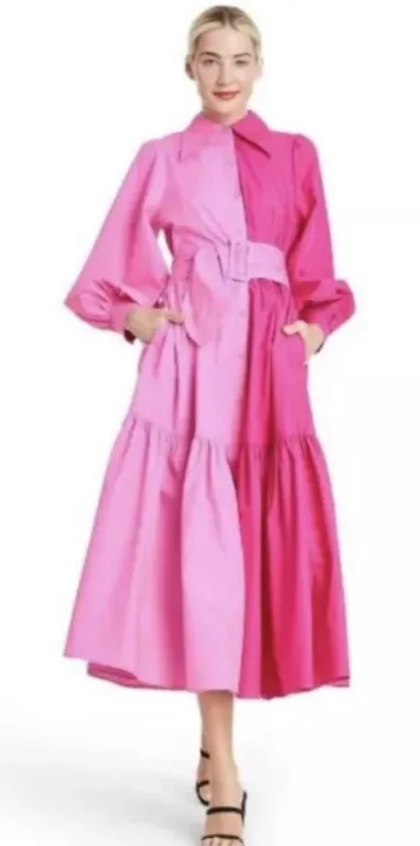 Christopher John Rogers For Target Shirt Dress Size 10 Color Block Pink Two Tone Long Sleeves Button Down Front Oversized Collared Neckline Belt Midi 100% Cotton Machine Wash. Tumble Dry. Color appearance may vary depending on monitor.