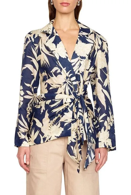 Christy Lynn Laiken Floral Blazer Size XS Coastal Old Money Resort Chic Elegant old money, coastal chic, resort wear, elegant tailoring, quiet luxury, refined feminine Elevated Christy Lynn Laiken blazer showcasing a refined coastal-inspired floral print in rich navy and soft ivory tones. Designed with a polished silhouette and feminine wrap-style detailing, this statement piece blends timeless tailoring with effortless resort elegance. Perfect for refined daytime looks or elevated evening styling, it embodies classic luxury with a modern, fashion-forward edge. • Brand: Christy Lynn • Color: Navy / Ivory • Pattern: Floral • Style: Blazer • Size: Women’s XS
