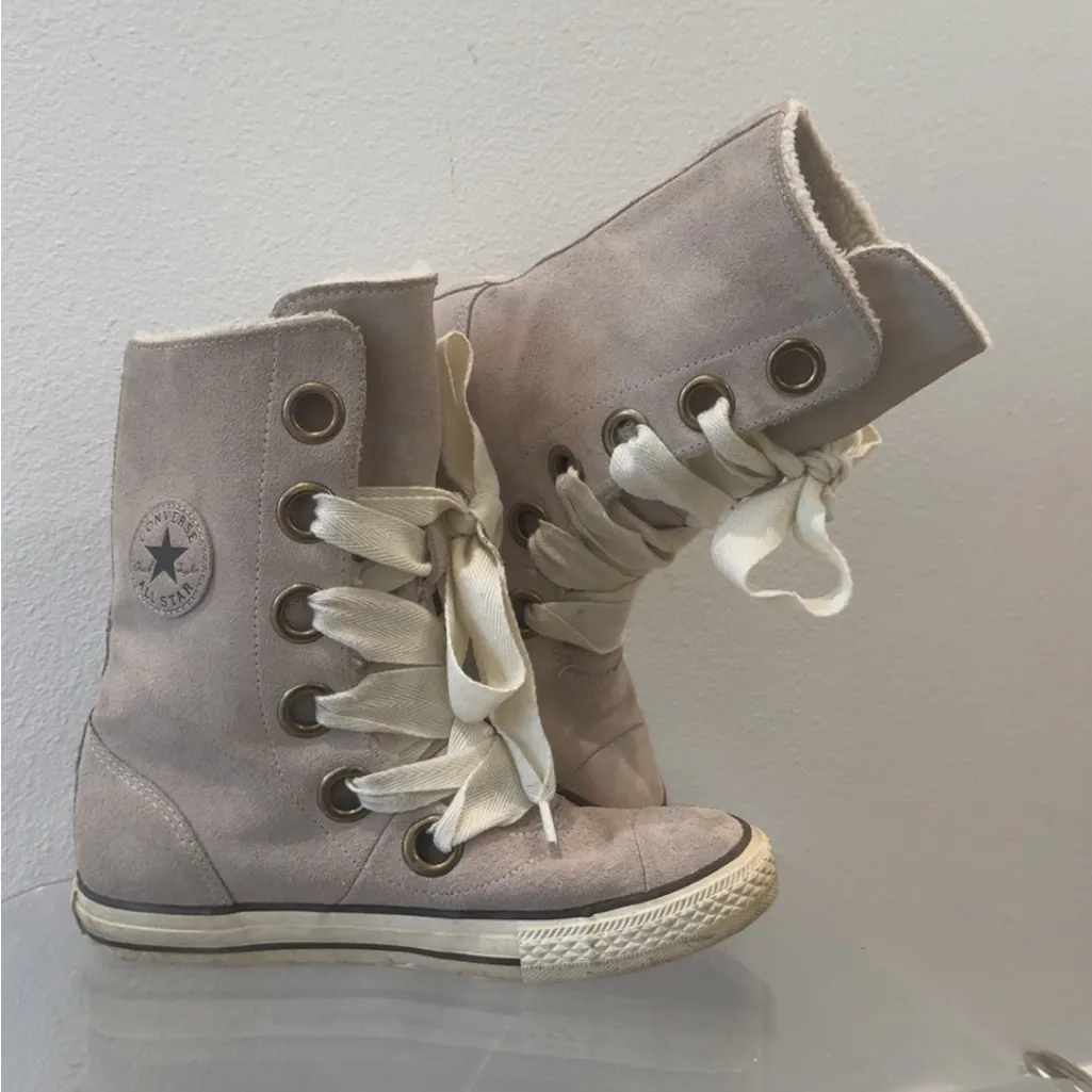 Women’s size 8 (converse size 6) Fleece lined creates an incredibly comfortable fit. Wide straps are very early 2000’s reminiscent. Outer sole has some scuffs and markings of wear, but bottom of shoes have very little wear.