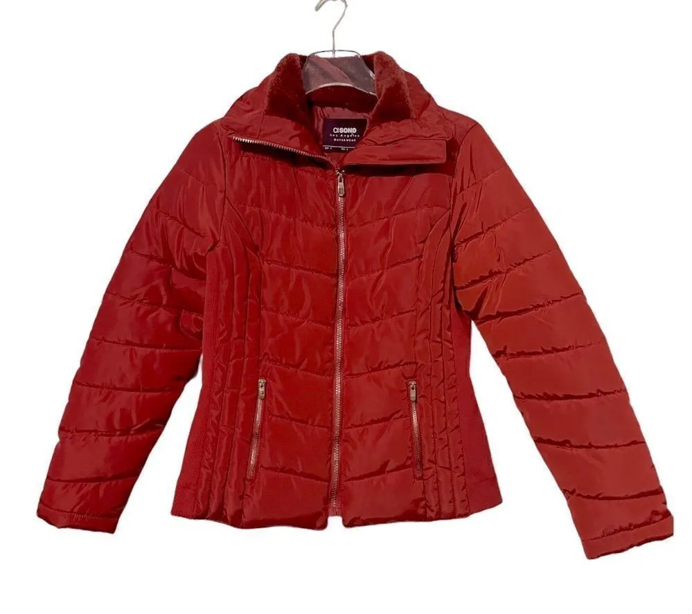 CI Sono Los Angeles Burnt Orange Quilted Puffer Jacket Size Small Brand New Faux Shearling Collar... Show more