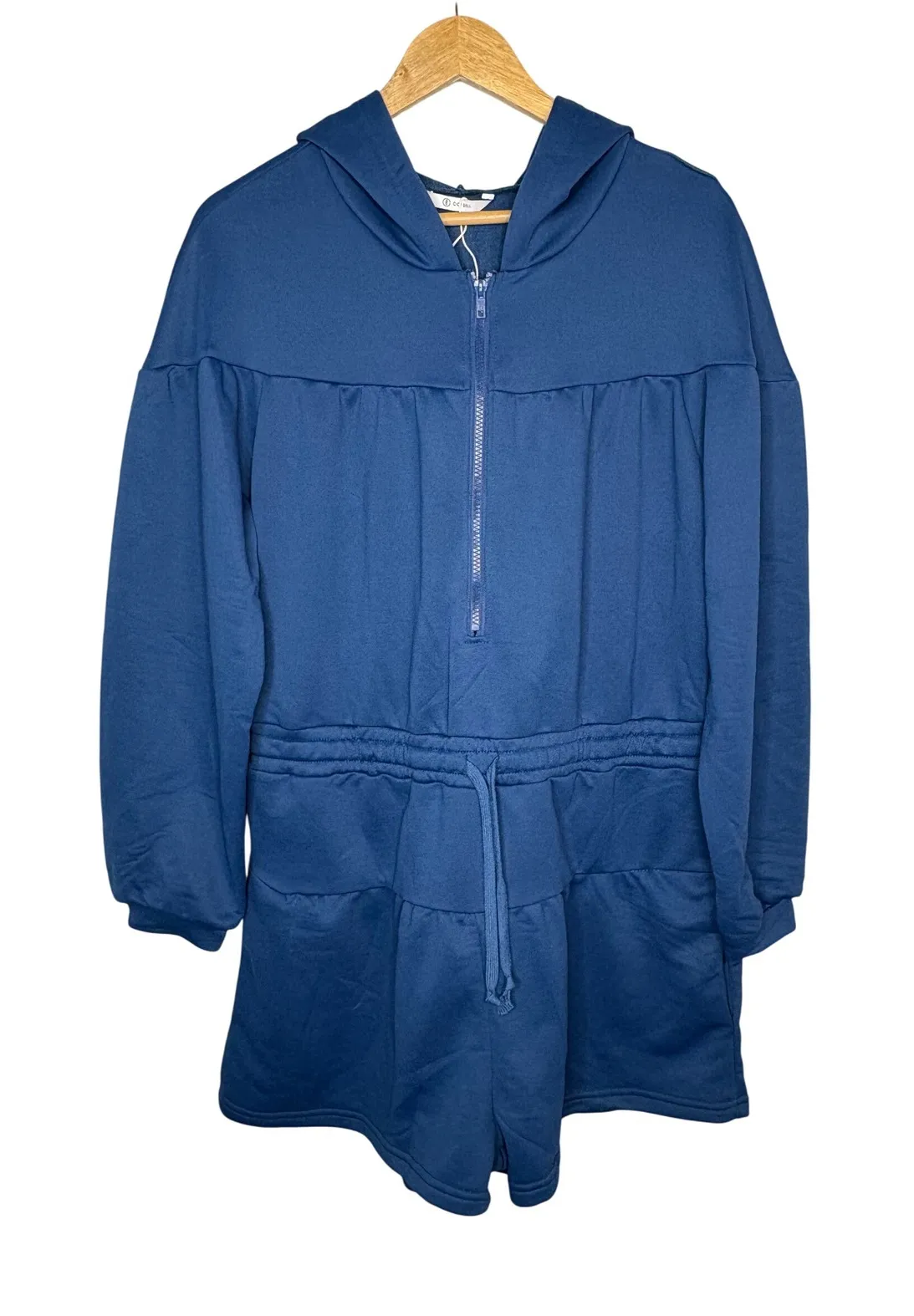 All orders shipped next business day. Cicy Bell Work Well Navy Blue Zipper Hooded Romper Shorts Jumpsuit Size XL NWT Navy blue hooded romper jumpsuit from Cicy Bell. This versatile piece features a quarter-zip neckline, pockets, an elasticized drawstring waist for a customizable fit, and a comfortable relaxed silhouette. The gathered detail at the bust adds a touch of style. Condition: New With Tags Department: Women Size: XL, Length- 35", Pit to Pit- 24" Type: One-Piece Style: Romper Material: Polyester Fabric Type: Sweatshirt Sleeve Length: Long Sleeve Accents: Pleated, Zipper Features: Pockets, Elastic Waist Season: Spring, Summer, Fall Keywords: hoodie romper, athleisure, loungewear, travel wear, casual outfit, sporty chic, comfort wear, weekend style, pullover, drawstring waist, playsuit, jumpsuit, zip up, sporty, streetwear