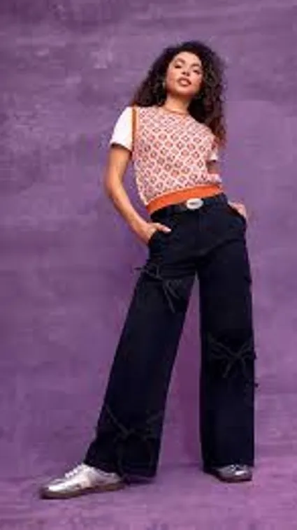 CIDER Baggy Wide Leg Jeans w Tie Details High Rise Black Size Large L Cargo Y2K - $25 - From Michelle