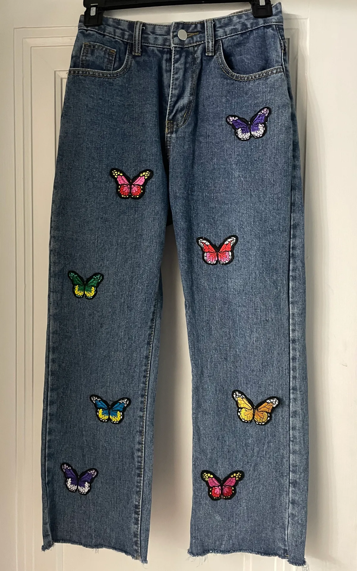 super cute butterfly jeans! Only worn once and sadly don’t fit anymore or else I wouldn’t sell them! Size small. Only flaw to them is that I wrote my initials in them, but other than that they’re perfect minus being worn once!