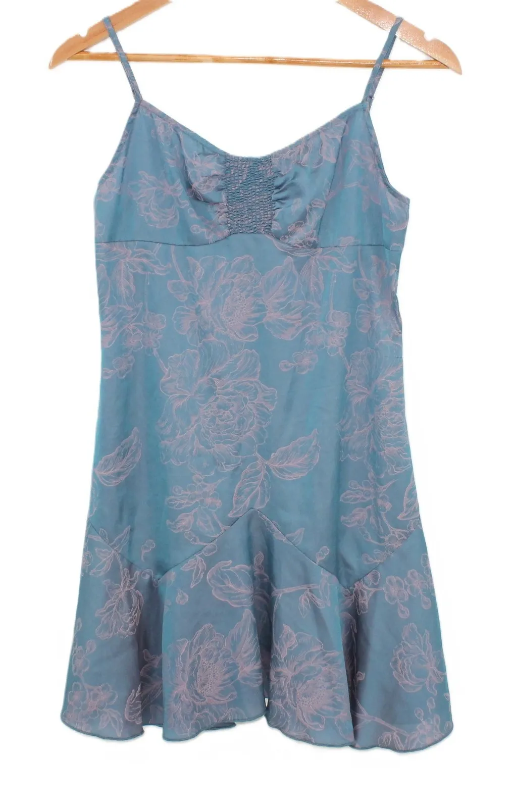 Floral Ruffle Hem Satin Mini Dress Y2K Babydoll Fairy Blue Pink Summer Size S Adorable blue and pink floral mini dress from Cider featuring adjustable spaghetti straps, smocked bust detail, and a soft flounce hem. Lightweight with a romantic silhouette, perfect for layering or babydoll, Y2K, and fairy-inspired looks. Style Aesthetics: babydoll – Y2K – fairycore – coquette – cottage core – romantic - feminine - delicate - summer - vacation - euro summer Features: adjustable straps – floral print – smocked bust – flounce ruffle hem – mini length - zipper closure Condition: two small runs (see photos) Measurements in photos – please review measurements prior to purchase to ensure fit.