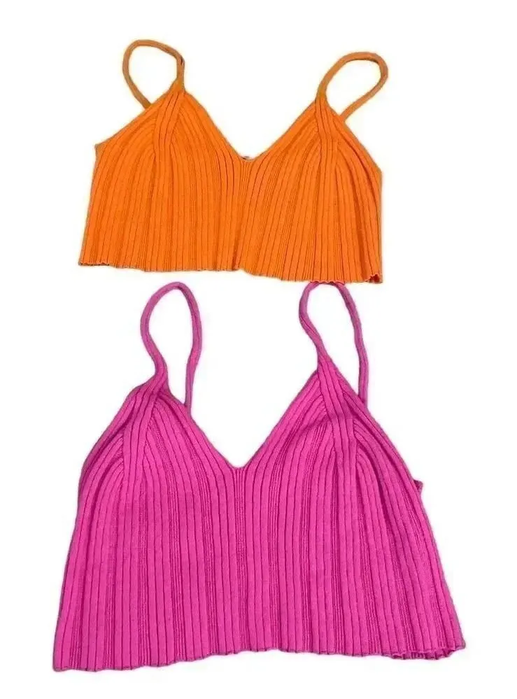Cider Knit Jersey Women’s Pink & Orange Ribbed V-Neck Cropped Festival Gypsy Boho Tank Top Bundle SZ... Show more