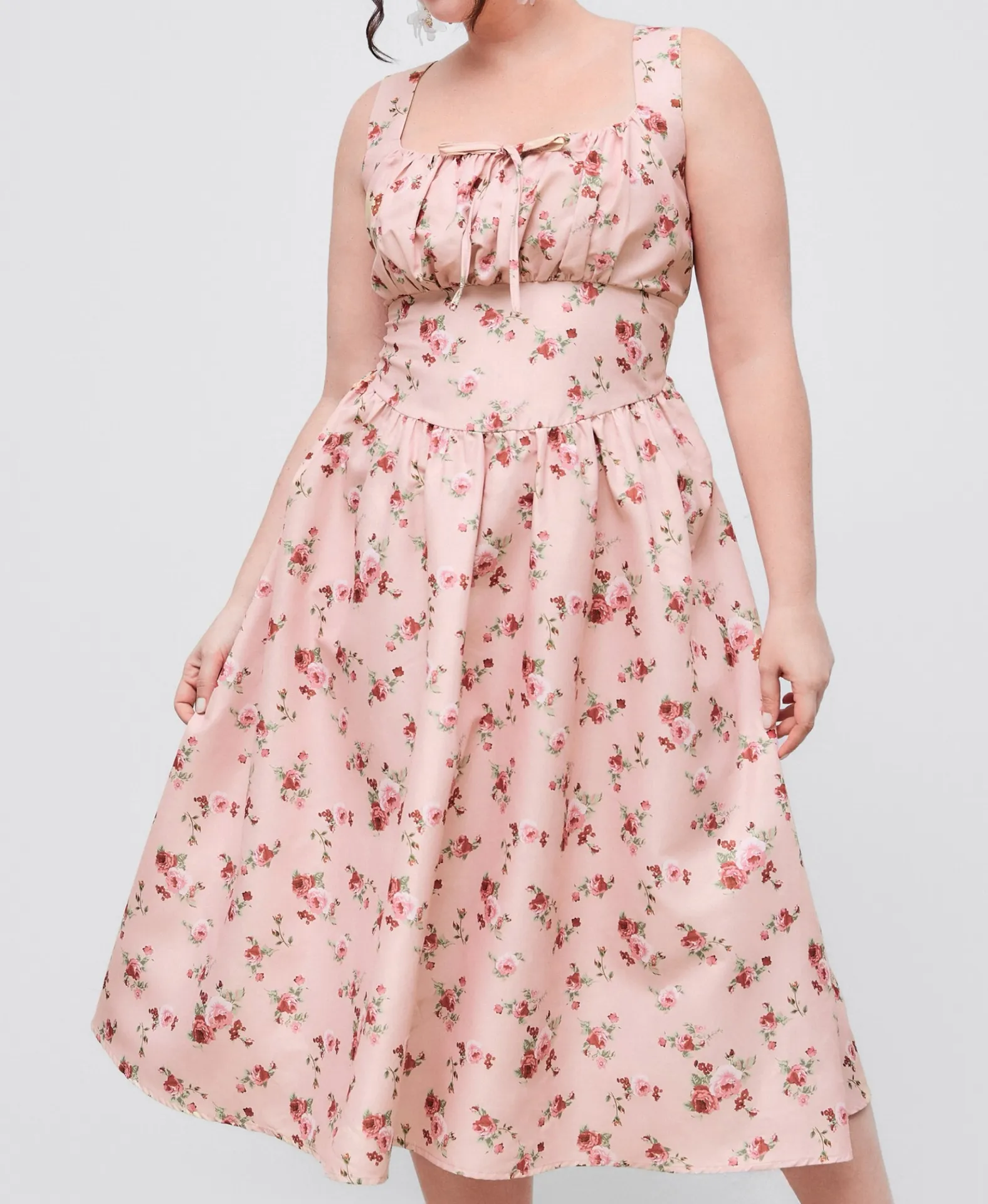 BRAND+CONDITION Cider Gently Preowned; Excellent Condition SIZE+MEASUREMENTS •Plus 3XL ~approx./unstretched/flat: •23” pit to pit •21” waist; hips free **entire smocked back provides plenty of stretch DETAILS •Square neckline; peasant style bust •All-over floral print •Corset style waist (no ties) •Ties at bust •Flowy A-line midi length skirt •Fixed straps •Smocking in back CONTENT+CARE 100% Polyester Wash cold; Dry low BIN15