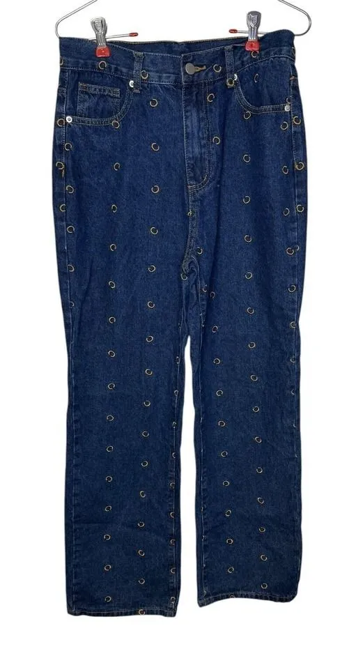 Brand- Cider Material- Cotton Size- Medium Color- Blue All Over Logo Closet's Happy Hour Measurements: Waist- 27" Inseam- 28" Rise- 12" Leg Opening- 8.5" Condition: Pre-owned, very good used condition. See Photos. Thank you for Shopping. Feel free to check out my listings for various preloved items.