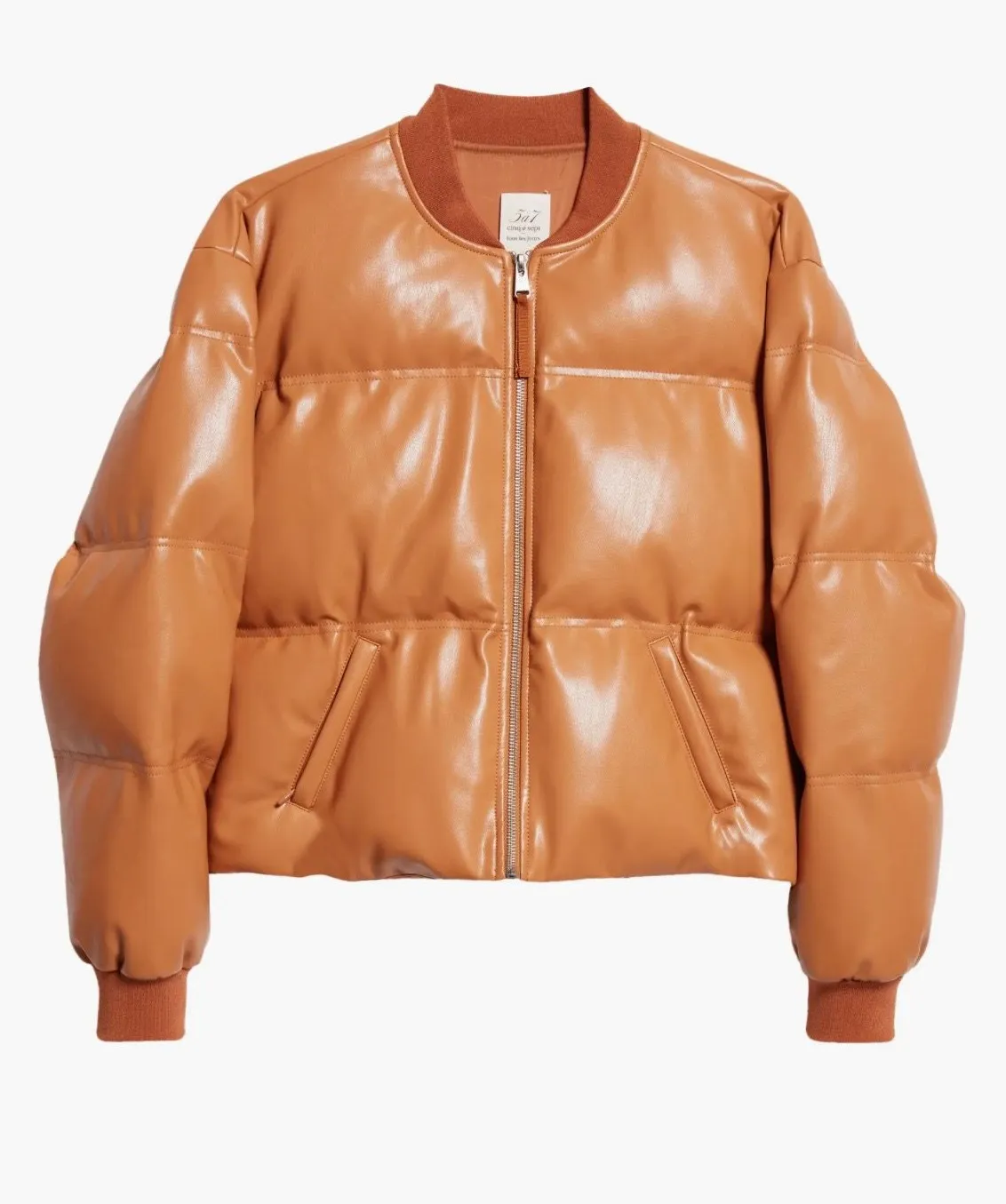 Cinq à Sept Maris Faux Leather Puffer Jacket in Chestnut Brown Size Small - $90 New With Tags - From Brie