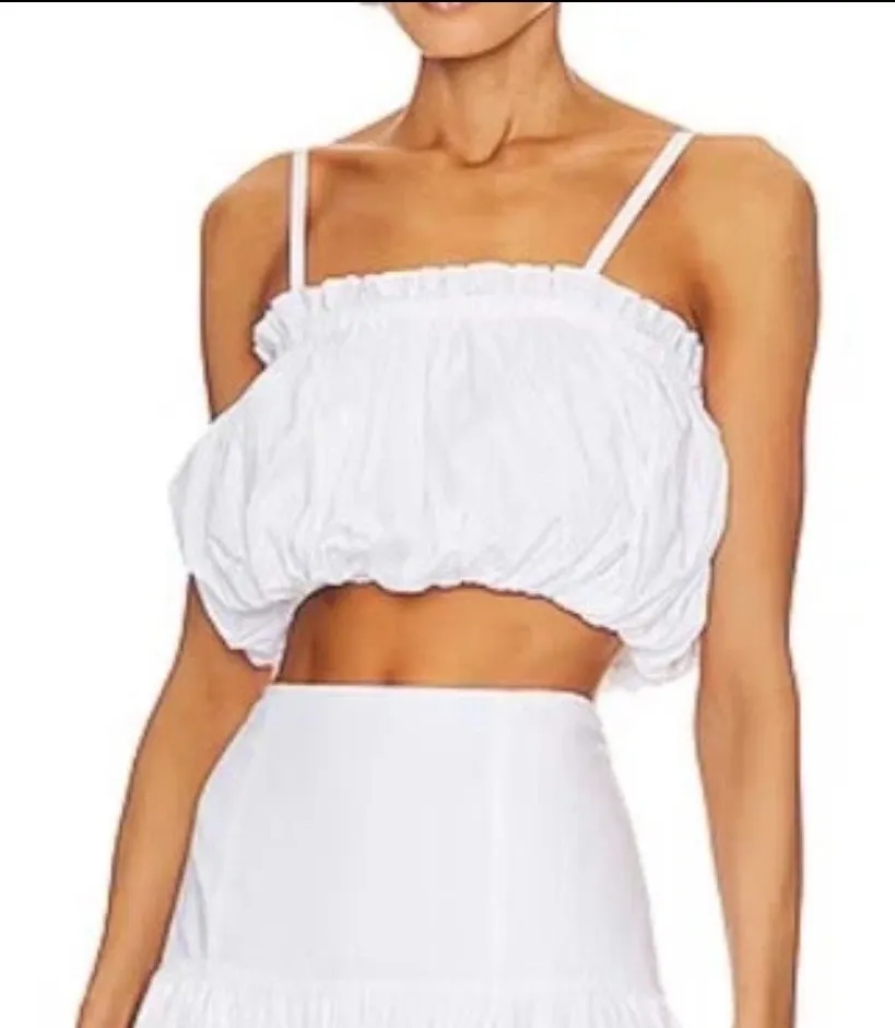 NWOT Cinq a Sept Women's White IVEE Sleeveless Top Size Extra Large. 100% Cotton. $225 Retail Be Chic and Elegant this summer with the Ivee Top. This elevated basic crop top is made of poplin fabric, making it perfect for the summer weather and everyday wear! Look effortlessly beautiful while staying comfortable in this chic and timeless set.