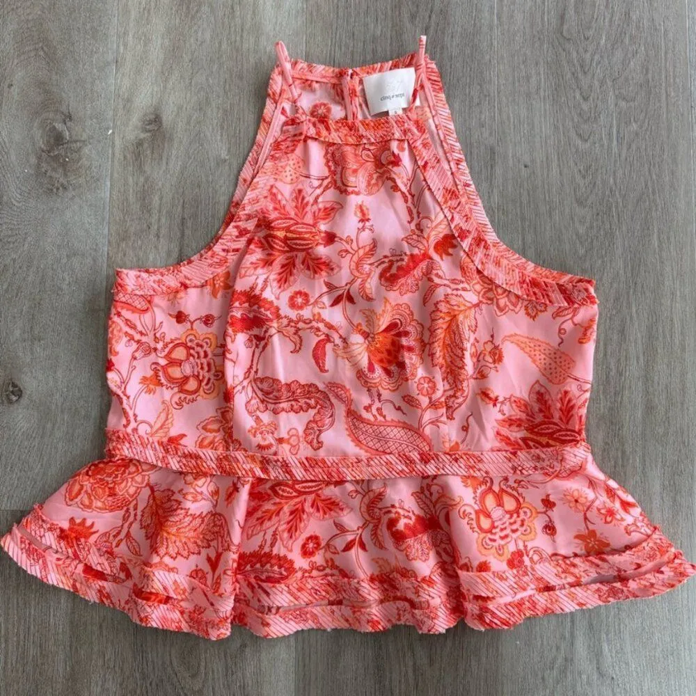 Cinq à sept peplum crop top halter pleated floral paisley pink summer preppy S - $85 - From Brittany