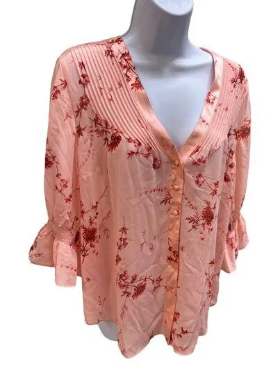 This elegant Cinq À Sept blouse features a refined floral print in a pale rose hue, complemented by delicate pleated detailing. Designed for a sophisticated appearance, the blouse includes a button front closure and mid-length sleeves with elastic cuffs. Its lightweight fabric offers comfort and ease of movement. The shirt is 100 polyester and retails for well over 300.00 and is unused with tags. Ready for any event. I ship super fast. SKU 7025 • Button front closure • Mid-length sleeves • Elastic cuff detail • Pleated neckline • Lightweight fabric Features: • casual semi or formal event Size: Womens M Condition: Pre-Owned Like New prewoned unused with tags no defects noted. This item has been cleaned, sanitized and deodorized. Although we clean our items additional cleaning may be needed such as spot treatments, etc.