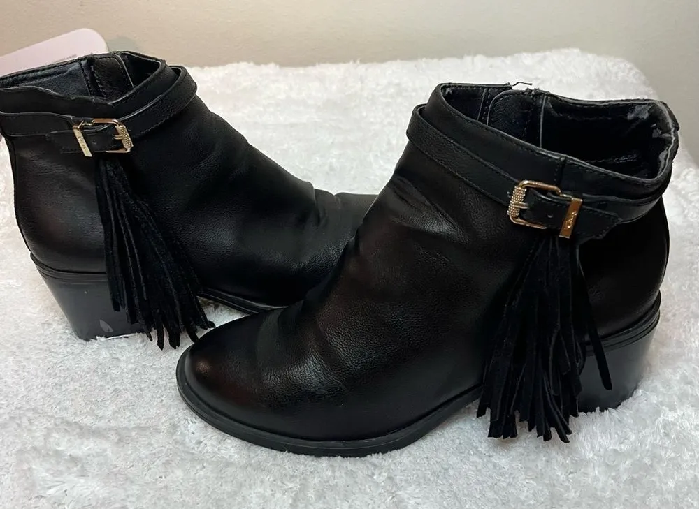 Edelman Jolie Boot Size 9.5 Fringe Black Block Heel Western Bootie Women’s In good pre owned condition. Please let me know if you have any questions or would like additional photos. Thanks!