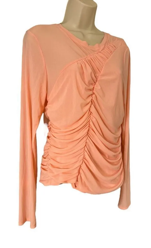 SAM EDELMAN Circus NY Asymmetrical mesh Long Sleeve Peony Top Size XL Pink - $5 New With Tags - From T