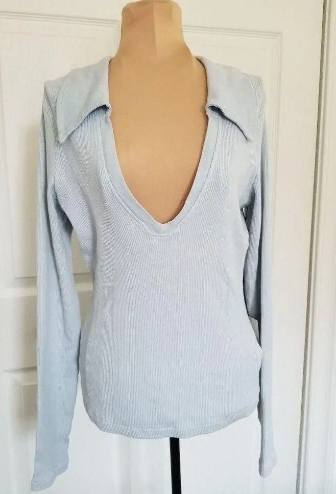 CITIZENS OF HUMANITY CAMERON V NECK LONG SLEEVE POLO TOP CLOUD DUST BLUE SZ M Long sleeve rib knit t... Show more