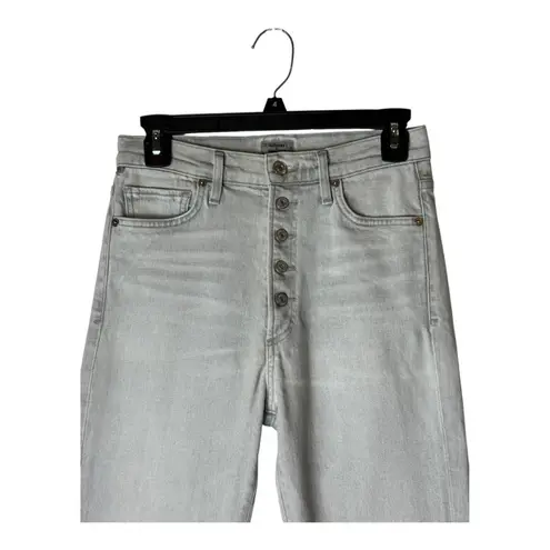 Crafted for a polished yet casual look, these high-rise skinny jeans feature a button-fly design and light gray wash. Designed for everyday comfort and durability.