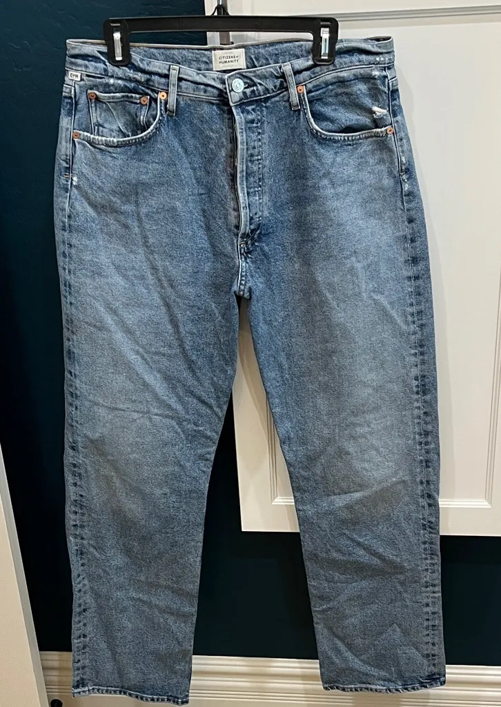 Citizens of Humanity Premium Vintage Eva relaxed fit in washed denim. Button fly, straight leg, Lad... Show more