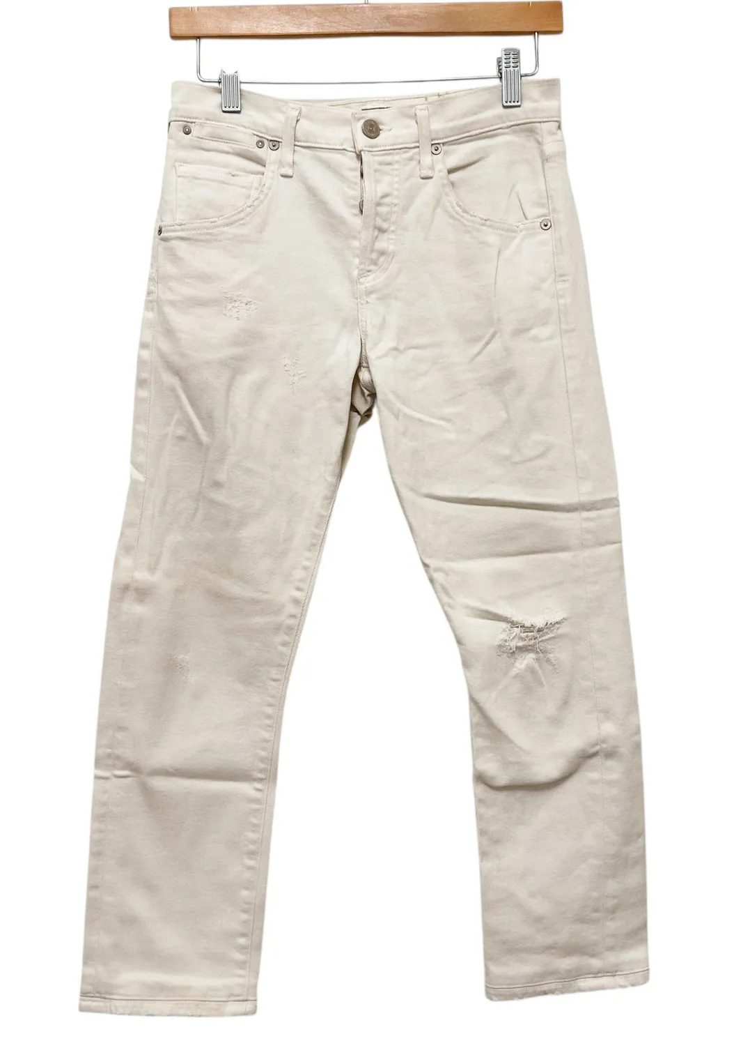 Size 24. Some faint marks throughout Waist 14" Rise 9" Inseam 25" All measurements are taken laying... Show more