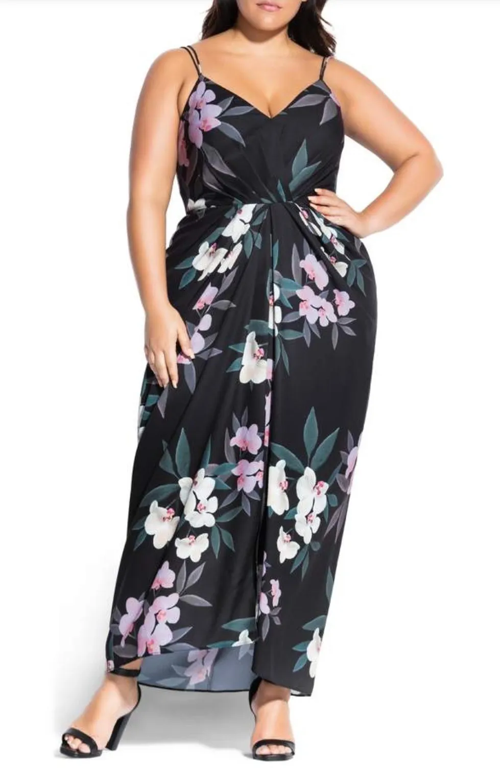 Style: Maxi Dress Length: Long Color: Black Department: Women Pit-Pit: 18 in Sleeve Length: Sleeveless Pattern: Floral Occasion: Party/Cocktail, Casual, Travel Material: Polyester Neckline: V-Neck Fabric Type: Chiffon Character: Boho, Floral Season: Summer, Spring Sleeve Type: Strappy Sleeve Closure: Zip # City Chic dress, maxi dress, floral dress, plus size dress, sleeveless dress, black floral dress, women's dress, summer dress, casual dress, party dress, special occasion dress, size 14 dress, XS dress, vacation dress, boho dress I ship out items Monday-Friday. • All items come from a pet-free, smoke-free home. • Please compare the measurements to something you already own. Thank you for visiting my store.