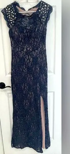 Dark Navy Blue Floor Length Sequin Sparkle Maxi City Triangle Formal Gown Women’s Size S/4 Approxi... Show more