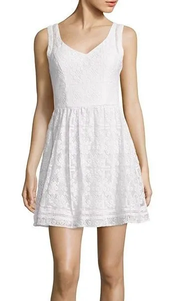 City Triangles Ivory Lace V-neck Skater Dress Juniors Size 11 V-neckline Embroidered cutout trim de... Show more