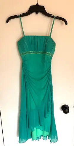 Beautiful dress, gives me Y2K vibes. It’s a beautiful green color, with layered fabrics, and sequins... Show more