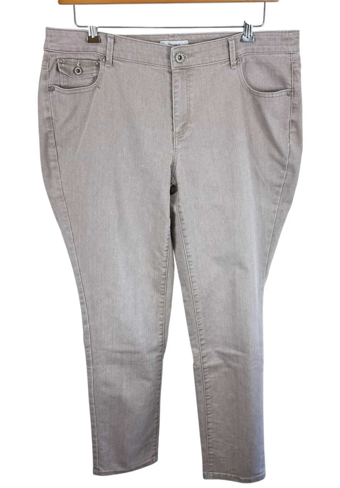 Excellent preowned condition. CJ Banks Tan Mid Rise Stretchy Skinny Jeans. Zipper/button closure. 5-pocket design. Cotton/Elasterell material. Approx. measurements: Waist 38", inseam 30", rise 10". Size 16W. About Treasures4Bristol: *Smoke free/pet free home *Fast shipping *All items shipped in clear sealed bags within outer packaging to protect from moisture. *Note that items may have some wrinkling develop during transportation. *A portion of every sale is donated to Bo’s Heavenly Clubhouse, an organization that supports families in Wisconsin who have lost a child. I lost my beautiful 4-year old daughter Bristol in October 2022. I started this business in honor of her!