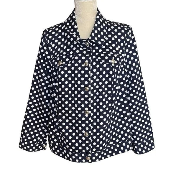 𝅺CJ Banks Women’s Navy White Polka Dots Jacket Size 1X Denim Buttons Casual - $37 - From Celia