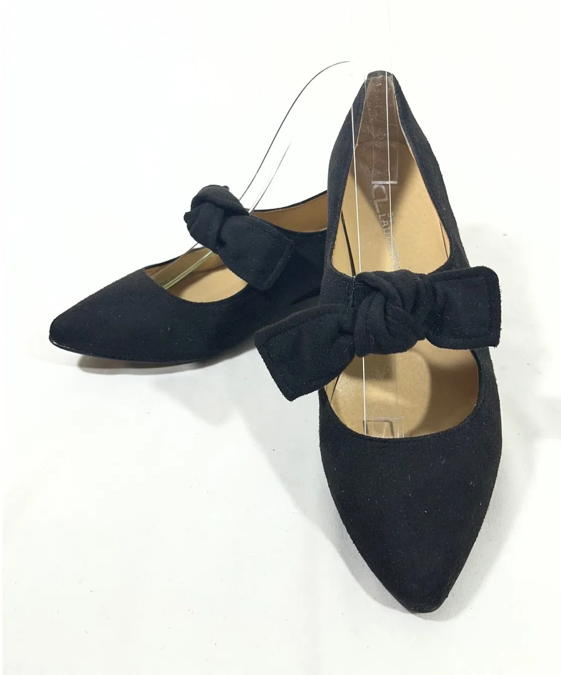 Chic black suede ballet flats by CL by Laundry add a touch of playful elegance to any outfit. These Mary Jane style flats feature a charming knotted bow accent on the vamp, bringing a sophisticated yet whimsical detail. The pointed toe silhouette elongates the leg, offering a flattering and refined look for everyday wear or special occasions. Perfect for a brunch date, a day at the office, or a casual evening out. Style: Mary Jane Department: Women Upper Material: Faux Suede UK Shoe Size: 5.5 AU Shoe Size: 7.5 Features: Straps, Comfort Occasion: Casual, Party/Cocktail Insole Material: Fabric Lining Material: Fabric Outsole Material: Synthetic EU Shoe Size: 38 Type: Flat Closure: Slip On Toe Shape: Pointed Toe Pattern: Solid Keywords: black flats, suede shoes, bow detail, mary jane flats, ballet shoes, pointed toe, comfortable, dressy flats, womens footwear, casual chic, work shoes, feminine style Thank you so much for your purchase! Shipping Days Monday Wednesday Friday!