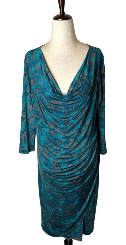 Clara Sun Woo Dress Womens Medium Teal Jersey Knit Faux Wrap Draped Sheath Features: • Draped, Cow... Show more